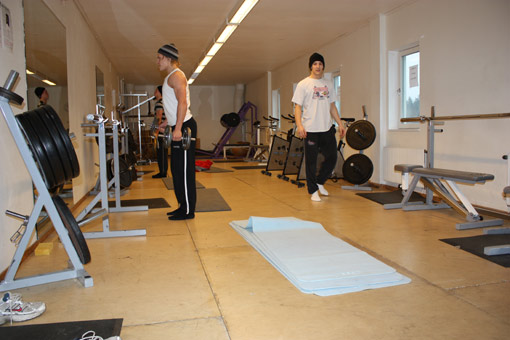 Idag var det premiär och de klarade det riktigt bra även om de är lite stela. Efter några veckor kommer de säkert klara positionerna bättre. De behöver verkligen stretchen, öka rörligheten, balansen och att focusera. Tyvärr glömde jag fota under yogapasset, men fick i alla fall en bild från det slitna ”hard-core-gymmet”.