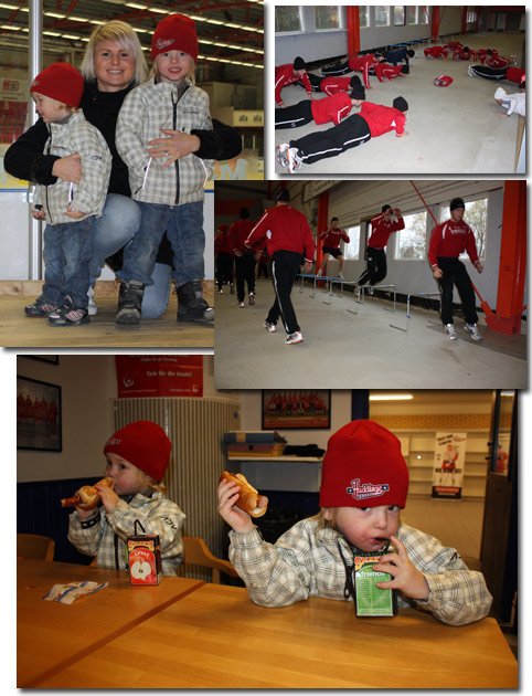 Jag inledde dagen med vår spinningcykel framför Barnkanalen (men med P3 i lurarna). Sedan bar det som vanligt av med hela familjen till Huddinges ishall. Min man tränade Huddinge Hockeys A-lag, men eftersom ”mina” killar, B-Juniorerna har match ikväll blev det inte att jag körde någon yoga med dem idag. Vi tittade istället på när A-laget körde armhävningar och spänstträning. De är otroligt duktiga. Hoppade på ett ben över häckarna mm.
