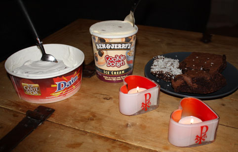 När barnen kommit i säng plockade vi fram lite glass och annat gott, tände lite ljus (endast våra änglabarn fick vara med) och tittade på Robinson. Min man dissade tjejen som avbröt och åkte hem. Han tyckte hon borde ha fattat att man är hungrig när man är med i Robinson. Lätt att säga där är vi satt i soffan och tryckte över 1000 kalorier medan de svalt.