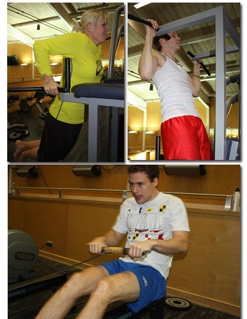 Idag har vi vår medlemsdag på KTH-Hallen och jag har hållt i tävlingar i gymmet. Killar och tjejer har fått tävla i max antal dips, max antal chins och i hur många meter de kan ro på en minut i roddmaskinen. Riktigt roligt och uppskattat av kunderna som var SÅ duktiga (ledaren gjorde 35 dips och 25 chins – om ingen slår honom under kvällen). De som vinner i varje klass (män och kvinnor, under och över 50 år) får 25 min massage – inte helt fel!