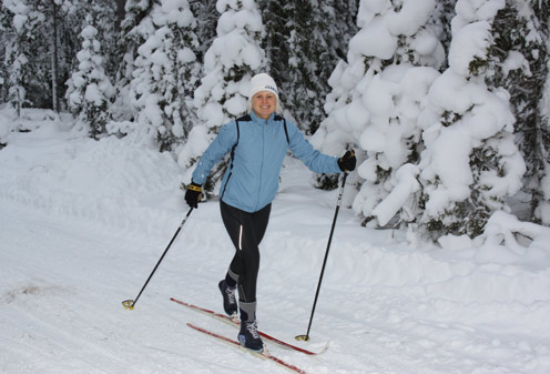 Under vinterhalvåret tänker jag utnyttja snön så mycket som möjligt och åka längdskidor. Det är verkligen en superbra träningsform där du tränar kondition och styrka för ben, rygg, armar, axlar, bål. Väldigt bra fettförbränningsträning är det också då pulsen normalt är något lägre än vid löpning, men högre än vid en promenad.