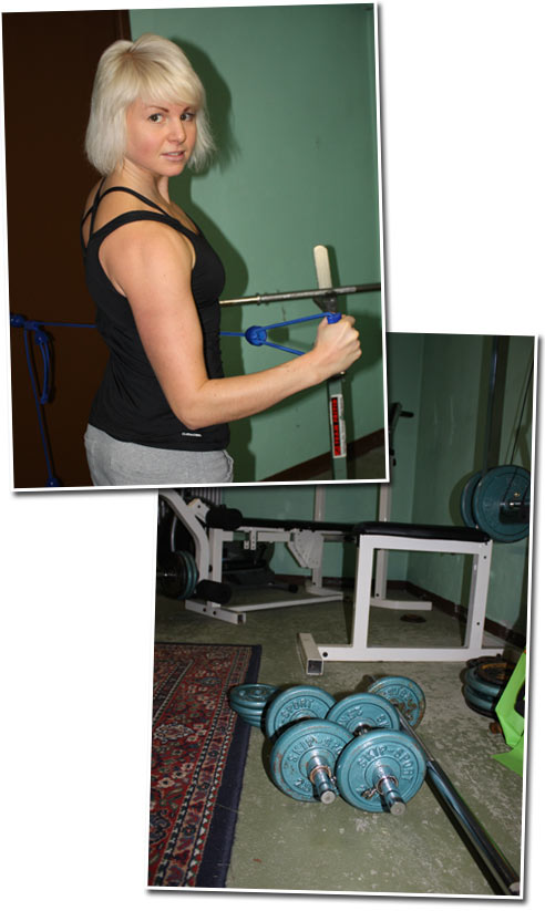 Vi har nu bilat ännu längre upp i Sverigen, till norra Jämtland och lilla Jorm (Jormvattnet). Där finns ett litet ”gym” i en källare där jag och min man brukar träna. Det är verkligen basic med riktiga järnvikter man skruvar fast, några gamla TV-Shopsmaskiner, en bänk, gummiband, en boll och en liten radio – mer behövs inte för att kunna träna ordentligt. Med lite modifikationer går det att träna hela kroppen.
