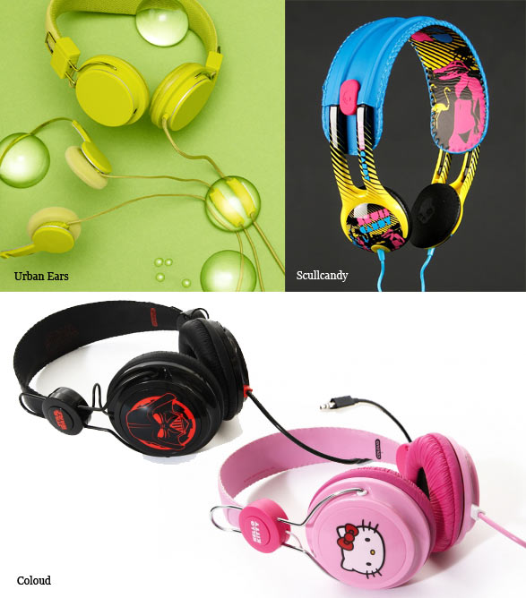 Nöjer du inte dig med vanliga svarta hörlurar till mp3-spelaren ska du spana in märkena Urban ears, Scullcandy eller Coloud. Inte bara en fröjd för örat utan även för ögat..