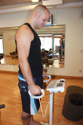 Efter två veckors träning- och kostprogram gjorde vi en impedansmätning för att se om något hade hänt, och det hade det. John hade gått ner 1,1 kg i vikt varav 0,9 kg av viktnedgången var fett. 0,5 kg/vecka är lagom att gå ner för att inte tappa för mycket muskelmassa och för att det inte ska kännas för jobbigt. John gick ”bara” ner 1 kg på två veckor, men då var det nästan bara fett han tappade vilket är superbra.