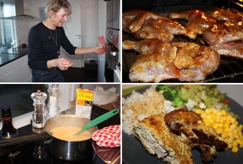 En av mina absoluta favoriter bland mammas maträtter är ugnsgrillad kyckling. Då hon var på besök hos oss bjöd hon på denna mumsiga maträtt. Jag har själv lite svårt för att tillaga en hel rå kyckling. Den ser för levande ut, men blir ack så god när mamma lagar.