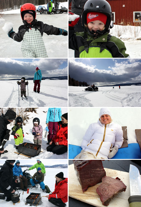 När vi är i Jorm är vi ute hela dagarna, så även denna långfredag. Skidåkningen spar jag till i morgon, men syrrans lilla Olivia åkte lite för oss alla. Mina grabbar ville mest åka skoter och bob.