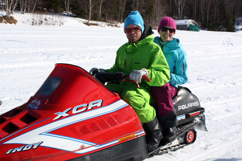 Mina syskon har riktigt snygga skidkläder i starka färger som lyser upp i snön. Funkar även på skoter.