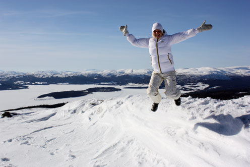 Terese har visat upp energibilder på sin blogg och här bjuder jag på mitt och syrrans fina hopp, fulla av energi. Vi står högt uppe på fjället, närmare bestämt på Jätten Jorms näsa om ni sett filmen Dunderklumpen. Kolla in och lyssna på Jätten-Jorm-sången här.