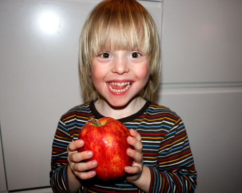 1. Äpple är också min favoritfrukt. Jag kommer aldrig tröttna på äpple. Vad gla’ och gullig han ser ut, din son!