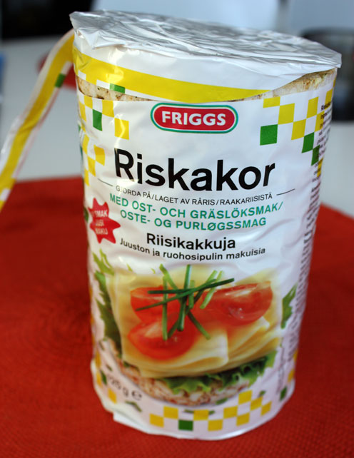 Jag är inte så förtjust i riskakor, men testade Friggs nya smak av ost- och gräslök. Helt ok även om det inte är något jag kommer fortsätta köpa. Hugo däremot var nöjd och mumsade i sig en hel kaka utan problem.
