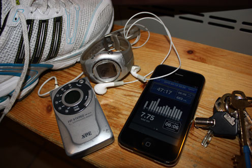 Det är tungt att vara tekniknörd när man ska springa. Massa prylar att släpa runt på (pulsklocka, iPhone, miniradio, nycklar). Jag har premiärsprungit med RunKeeper i iPhonen och sprang 7,75 km backigt elljusspår med en genomsnittlig hastighet av 6,06 min/km. Bra för att vara kl 6 på morgonen. Kul att ta reda på hur långa mina löprundor är. Fram tills nu har jag bara gått efter tiden, men nu kan jag sätta upp mål på distansen också.