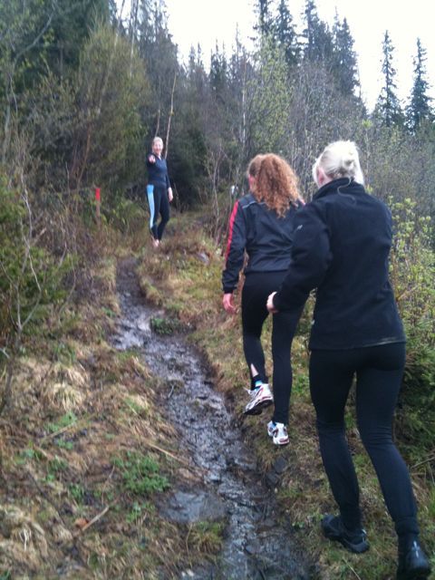 Löpning lett av Ann-Sofie Forsmark längs leriga stigar rakt upp för fjället, backinterballer och härligt flås inledde dagen. Skönt pass ihop med några tappra deltagare och duktig instruktör.