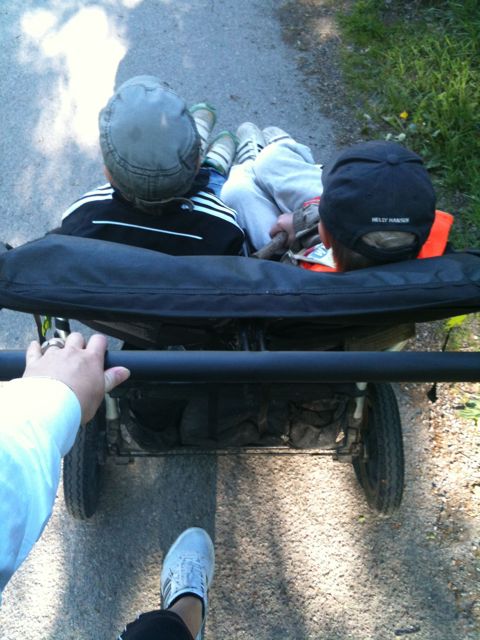 2. Nej, jag springer inte heller längre med vagnen. De vill inte sitta så länge. Detta är bara ett tips till de som har barn som VILL åka! 🙂