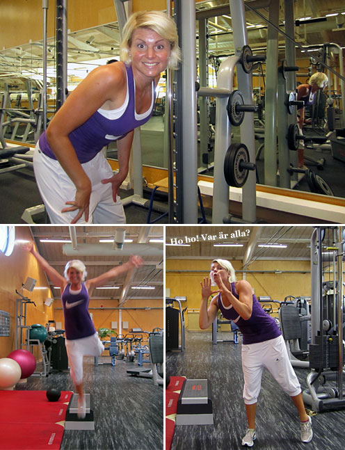 ..att träna lite när jag hämtade hem cykeln från jobbet. KTH-Hallen stängde precis och jag och min kollega Anna kunde träna helt själva i gymmet. Det ÄR faktiskt lyxigt med ett komplett gym där hantlar m.m. inte behöver byggas.