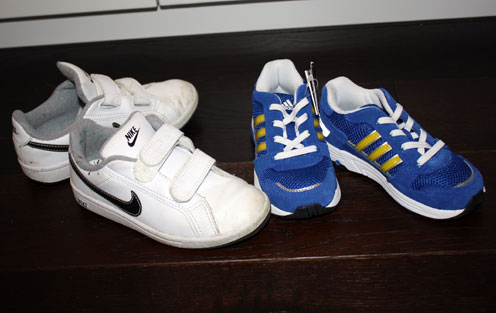 Vi har köpt nya skor till barnen. Efter sommarens ”flip-flop-period” har deras fötter växt ett par cm och de gamla gympaskorna är för små.