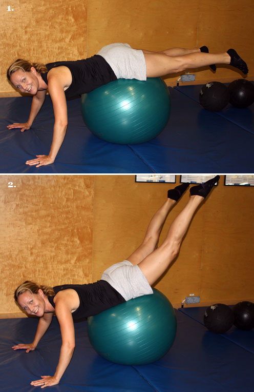 - Ligg på magen på en fitnessboll med händerna i golvet.