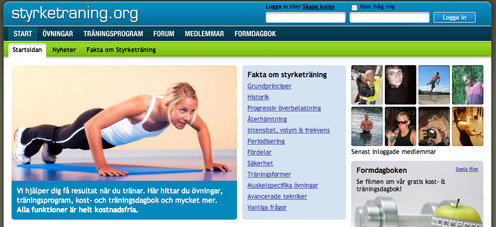 Så här ser webbens nya styrketräningssida ut.