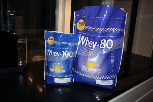 Ett prisvärt proteinpulver hittar du på Gymgrossisten (du hittar en länk till vänster här i bloggen). ”Whey-80” eller ”Whey-100” från Star Nutrition. Kolhydrater är lätt att få i sig, så det är bättre att satsa på ett rent proteinpulver.