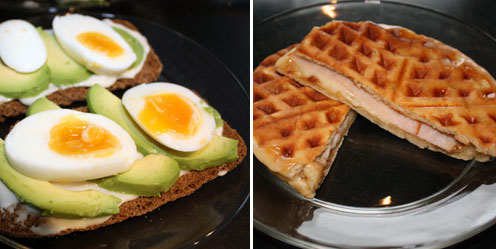 Skön söndagmorgon med en stor kopp te och äggmacka med mjukost och avocado. Till grabbarna grillade jag en ost- och kalkonmacka i våffeljärnet.