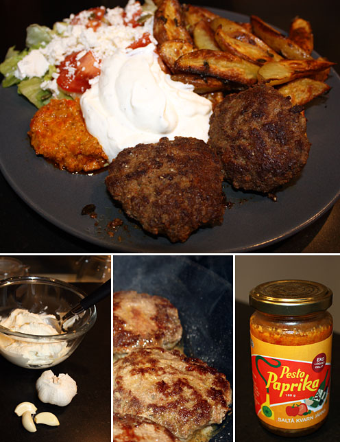 Här har Ecoviva satt ihop en 5-poängare. Mycket gott tyckte hela familjen. Speciellt den kalla yoghurtsåsen med vitlök att dippa klyftpotatis i. Jag lade även till lite fetaost som passade utmärkt till.