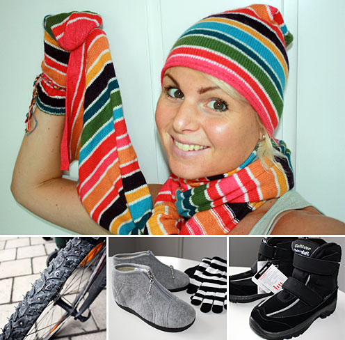 Åh, har också spanat på det där färgglada möss-halsduks-kitet, fint! Och dubbdäck på cykeln, det borde jag också införskaffa… jag som cyklar året om! 🙂