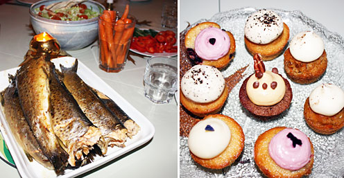 I går var mina föräldrar och alla barnen (som är lediga från förskolan den här veckan) hemma hos syrran. Jag, mina syskon och min man dök upp efter jobbet och bjöds på egenfångad röding med mandelpotatis (även de från mamma och pappas land) och till efterrätt hade syrran köpt små söta cupcakes. Otroligt gott alltihop!