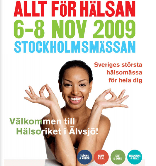 – Allt för hälsan mässan i Älvsjö. Min man ska dit och spana, men själv jobbar jag både idag och i morgon. På söndag vill jag vara med familjen, så det blir ingen hälsomässa för mig. Gråter dock inte. Det brukar vara ungefär samma saker (kosttillskott, lite kläder, spa-prylar, deffade människor och endel nyheter).