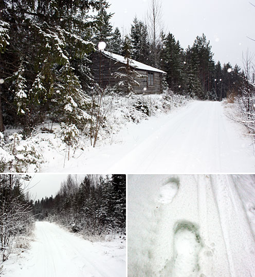 Sovmorgon till kl 8.30, en kopp grönt te med svärmor och pojkarna som åt smörgås. Sen en timmes morgonpromenad i vacker Dalaskog. Lätta snöflingor föll, Robyn sjöng för mig i min iPod och jag andades extra djupt, som för att fylla lungorna med frisk luft tills vi ska tillbaka till stan.