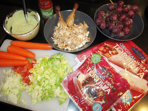 Jag köpte idag en färdiggrillad kyckling, minitrortillas till barnen, stora till oss vuxna, sallad och svängde ihop en guacemole (avocado, mini creméfraiche, örtsalt, citronpeppar & paprikapulver). Skalade också några morötter som är perfekta att gnaga på tills maten är klar eller dippa i överbliven guacemole. Till efterrätt åt vi STORA saftiga vindruvor som jag inte kunde låta bli i affären.