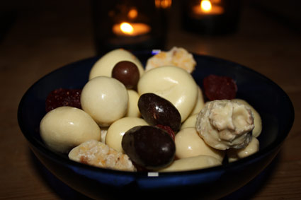 • Det var BÄBISARNA i magen som skrek efter några bitar naturgodis efter maten. De stora paranötterna med yoghurtöverdrag. Mmmmm…