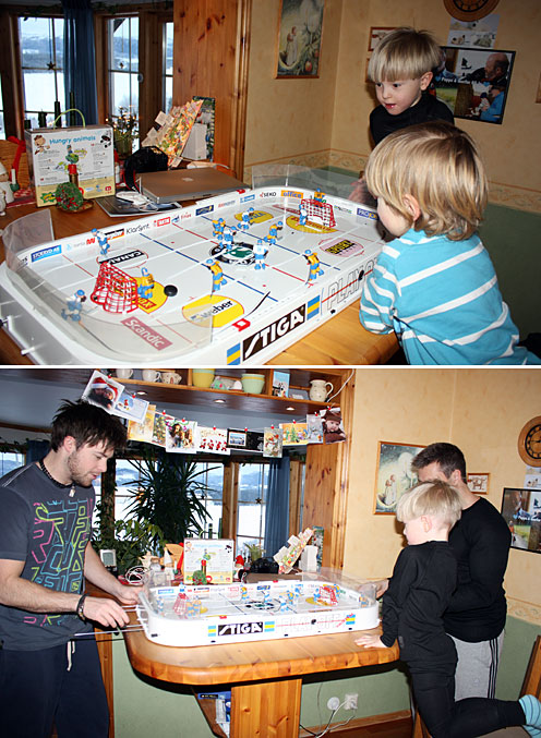 Som barn i en träningsfamilj får man skridskor och hockeyspel i julklapp. Det sistnämnda har varit mest populärt både för stora och små. Perfekt när det är för kallt att själv vara ute och åka skridskor..