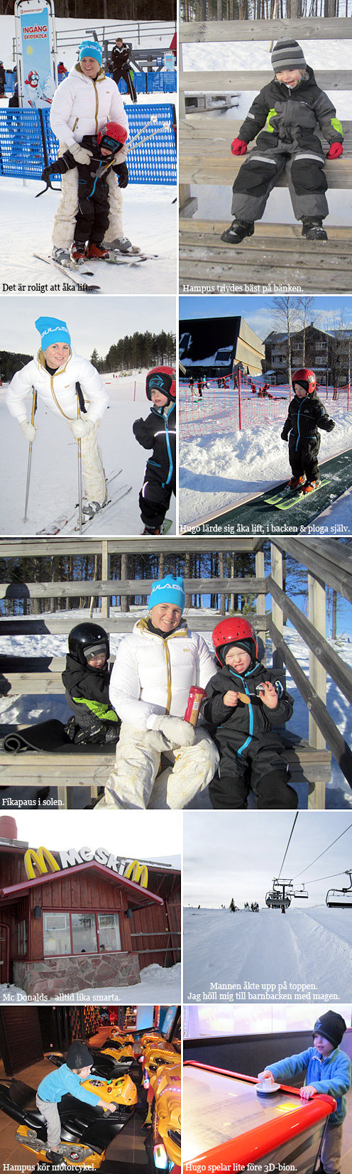 En vecka utan modem hemma och 3 dagar i Sälen, Lindvallen utan dator. Men nu är jag tillbaka i etern med lite bilder från vårens bästa helg hittills. Vi har åkt massa slalom med barnen (även om Hampus vägrade efter några försök där han hängt i min famn nerför backen -tungt!). Hugo däremot var superduktig och höll först i min stav för att sedan lära sig åka helt själv och ploga. Helt klart helgens höjdpunkt!