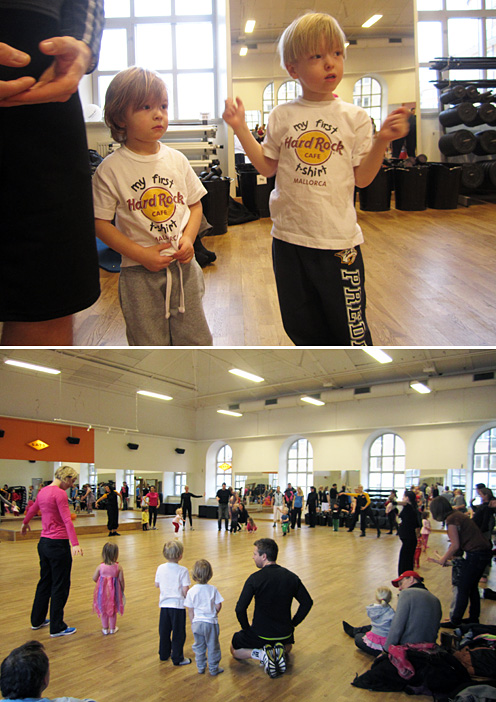 Idag har Hampus fått testa AbsoluteShowKidz 2-4 år på SATS. Mannen (som är lite rörligare än mig) och Hugo var med som moraliskt stöd, men det hjälpte inte. Hampus tyckte INTE det var roligt och han var inte ensam. Tror det var för lite fart så att barnen blev rastlösa. För mycket stillasittande och ”balettrörelser”.