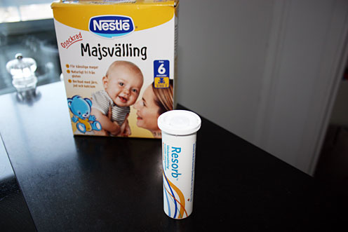 Jag avslutade gårdagen med magsjuka – fy f-n! Kändes som om jag skulle få upp bebisarna genom munnen.. Är helt svag idag och tom på energi. Det enda jag fått i mig är vätskeersättning men ska försöka dricka lite majsvälling som är milt för magen och be mannen handla yoghurt med aktiv bakteriekultur. Nu vila…