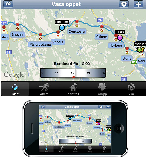 Nu kan du ladda ner Vasaloppets app och följa upp till sex deltagare på en interaktiv karta i din iPhone. Ett kul sätt att vara med i Vasaloppet/Öppet Spår även om du inte åker själv och följa någon du känner.