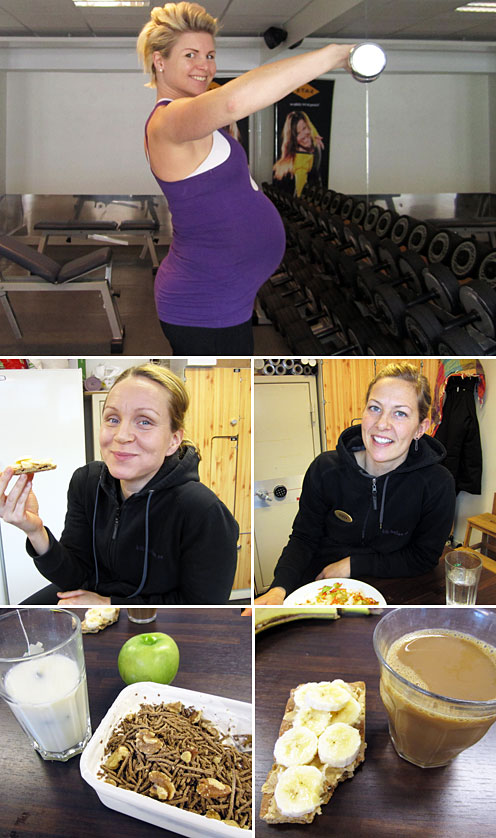 En fikade (Johanna före sitt pass: knäckemacka med jordnötssmör och banan + kaffe), en åt frukost nr 2 efter träningen (jag: kesella, yoghurt, All Bran+, valnötter, te och äpple) och en lunch (Sofia: en god matlåda med kyckling och sallad). Puss på er fina!