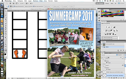 Måndag och jag är supereffektiv. Har lämnat på förskolan, tränat (lite rodd och cykling), dammsugit, bäddat rent i sängarna. Nu äter jag lunch (fiskpudding med röding som du hittar recept på här) samtidigt som jag ritar fötter som hoppar i stegar (fråga mig inte) till min mans jobb, gör affischer till årets Summercamp OCH bloggar.