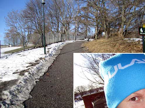 20 minuter på roddmaskinen och 20 minuter på sittcykeln startade min dag. Vågar mig bara på sittande kondisövningar eftersom jag får ont i bäckenet och magen av stående. Enformigt, men ändå skönt att kunna röra sig lite. Högst puls fick jag däremot av den korta promenaden hem upp för backen på bilden (130 slag/minut). Kommer ha lite att jobba på när graviditeten är över..