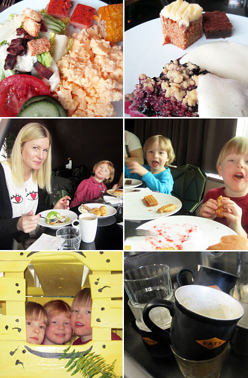 Mätt och belåten efter en brunch med syster Mia, Olivia och man på Rica Hotels. Var inte den bästa brunch jag ätit. Dåligt utbud av rätter men jag lyckades plocka ihop ett par goda tallrikar och det fanns mycket för barnen. Maten vägdes dock upp stort av det trevliga sällskapet och ”Alfons lilla värld” där söta kusinerna lekte länge. Ett bra brunchställe för barnfamiljer!