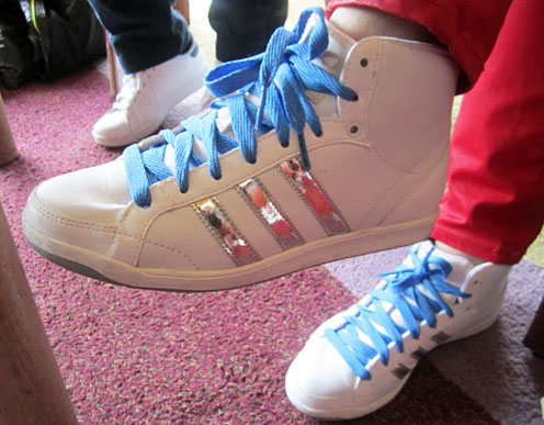 De här snygga Adidasskorna med silverränder och blå skosnören hade syster Mia på sig när vi brunchade igår. Att snörena är just blå är ingen slump utan Mia ville ge pengar till Barncancerfonden. Stadium har denna sneakerskampanj där olika färger på skosnörena representerar en organisation som får hela vinsten: