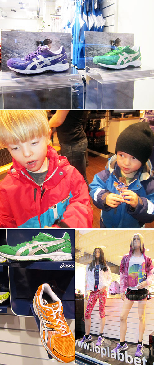 Hela familjen har varit en sväng på Löplabbet där Asics haft kickoff för sin nya marathonkollektion. Mannen träffade sin sponsor Asics och jag kollade runt och stötte på söta Sara med sin löparfrälste grabb. Barnen var mest intresserade av att smaska bars och sportdryck från Maxim (får se när/om de somnar ikväll).