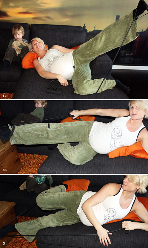 - Benspark för framsida lår (försökte hålla gummibandet bakom mig och sparka framåt).
