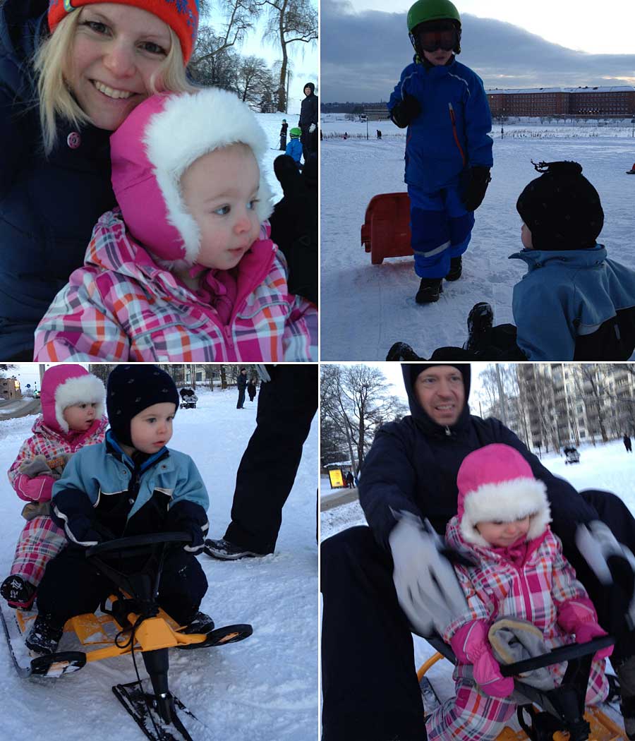 Snowracer med mina babe´s. Pappan kom hem och nästan hela familjen (utom Hampus som bowlade med en kompis) fick en stund i pulkbacken.