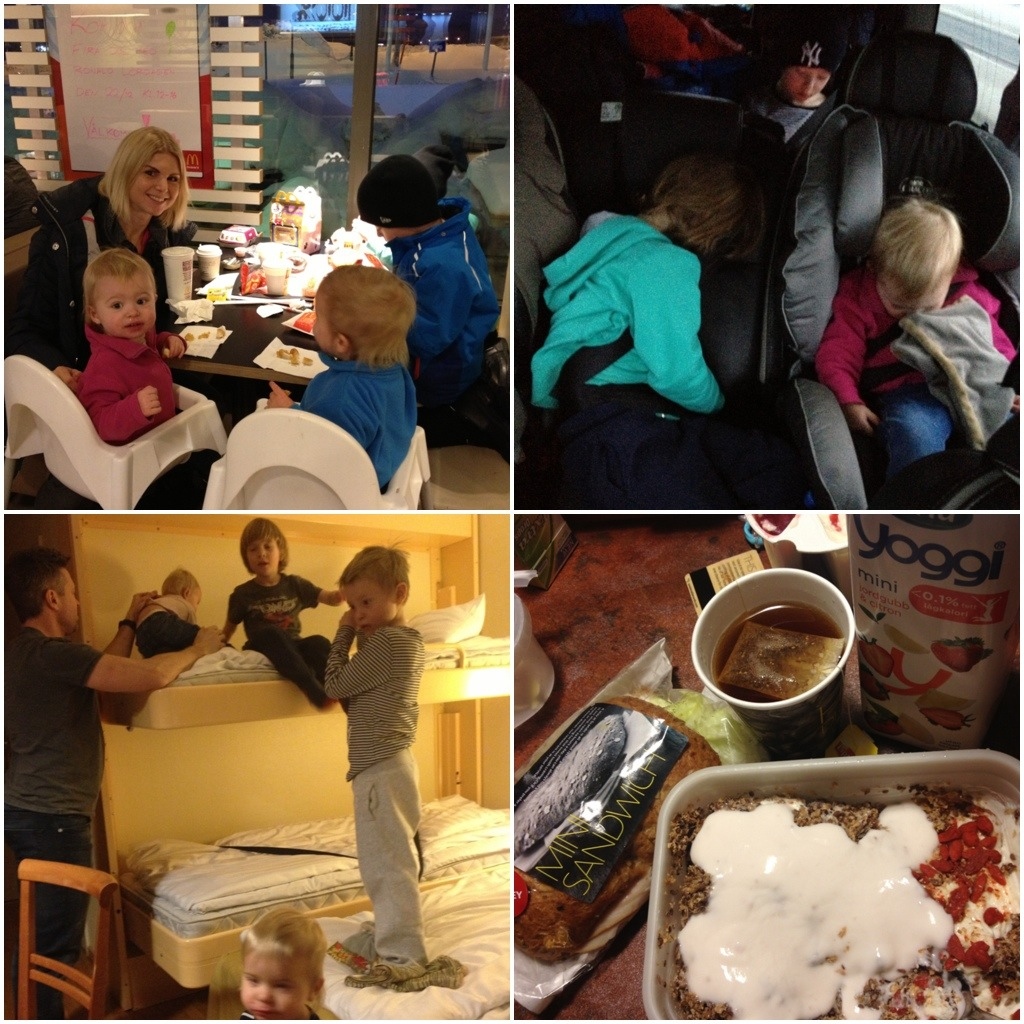 20121220-195325.jpgSkönt att mellanlanda i Sundsvall på Scandic efter en halv dag i bil. Långresa i bil kan vara riktigt avkopplande – tid att prata, lyssna på en ljudbok eller sova. Men det är bara att glömma med 4 kids som blir åksjuka, tappar nappen, är kissnödiga och kivas om iPaden. Jag är helt slut och då var det Jonas som körde hela vägen.