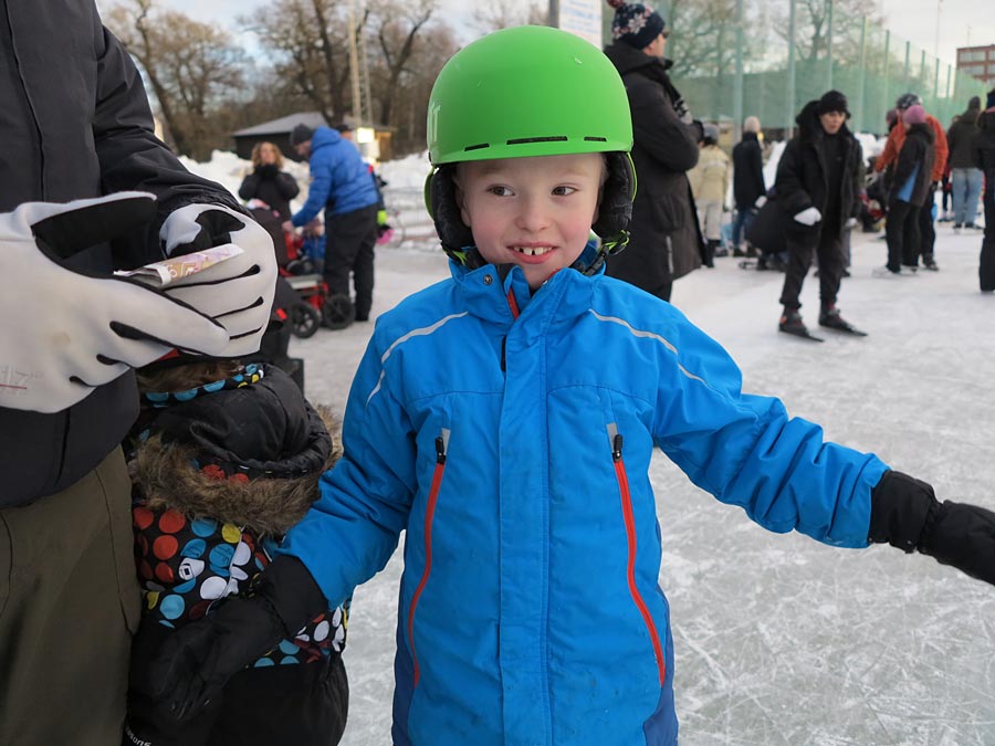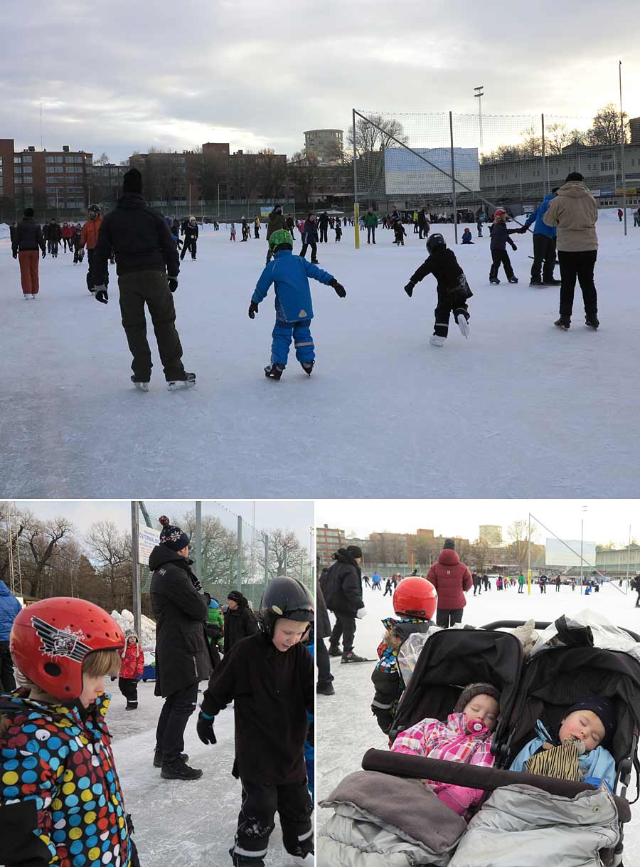 Själv kliver jag gärna upp tidigt för att hinna med att träna OCH hitta på något med familjen. Dagens aktivitet blev skridskor på Östermalms IP (för storbarnen och pappa – jag och twinsen coolade vid iskanten). Hugo (översta bilden) är riktigt duktig nu, men Hampus (prickig overall) fick ont i fötterna.