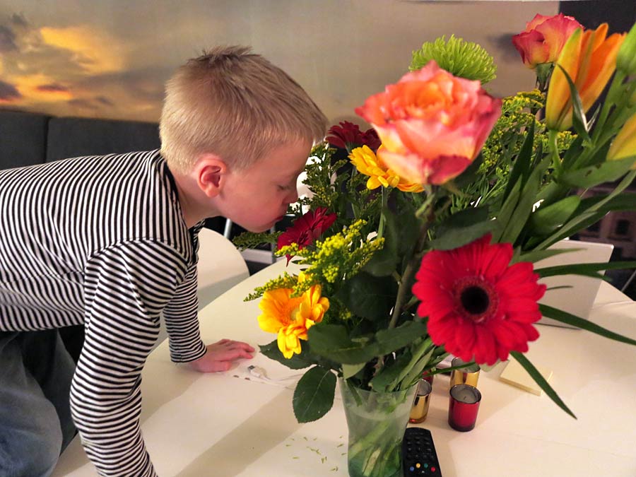Härligt för dig att få ha honom hemma lite mer och jag är allt lite avundsjuk på de fina blommorna 😀