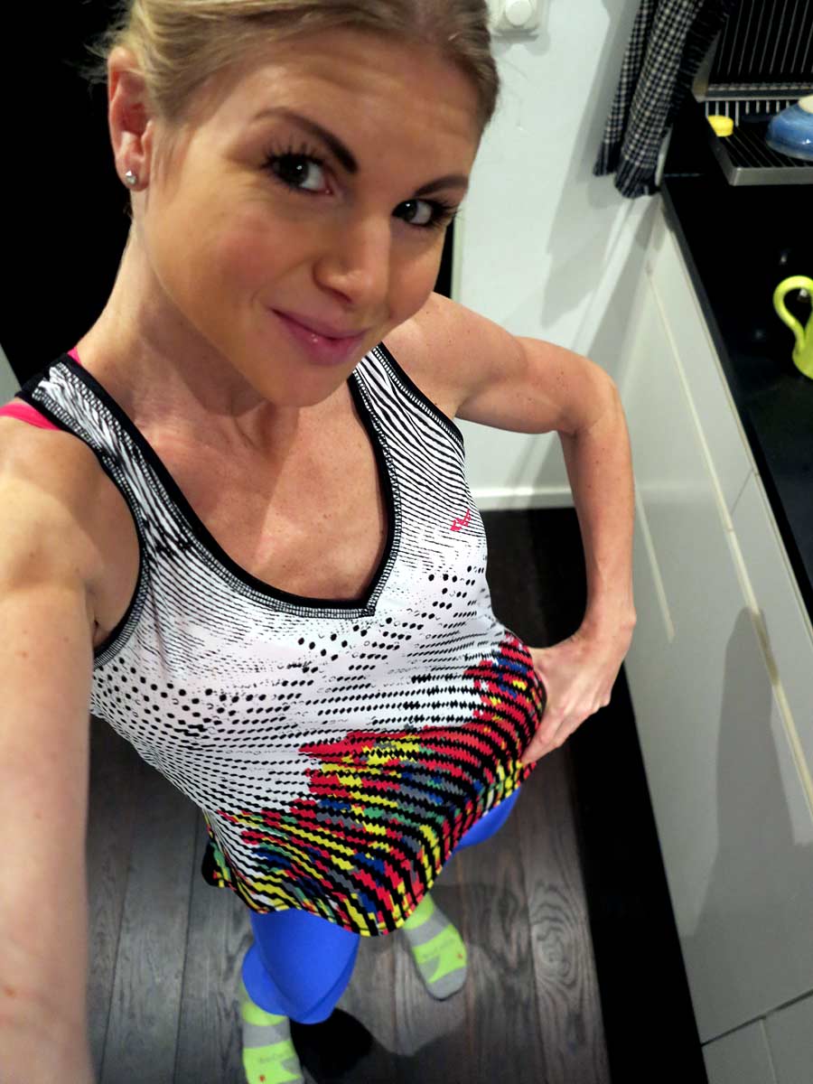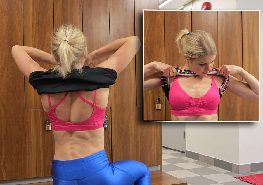 Och så lite stripteas 😉 Gillar min nya sport-bh med snygga band i ryggen och vadderade kupor som ger fin bröstform. O.B.S. – väldigt liten i storleken för oss som är breda över ryggen om du vill köpa en. Min i Medium är rätt tajt trots att jag annars har Small i toppar.
