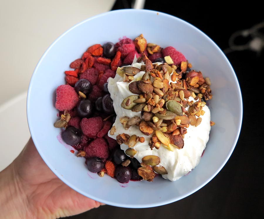 Men som namnet ”kosttillskott” antyder är det just ett tillskott och ofta tar jag det i samband med måltiderna. T.ex. Gourmet-Pro vanilj (ett annat supergott pulver från samma märke som innehåller protein med långsammare upptag) blandat med lättkesella ihop med varma bär och knaprig müsli till mellanmål eller före träning. Galet gott!