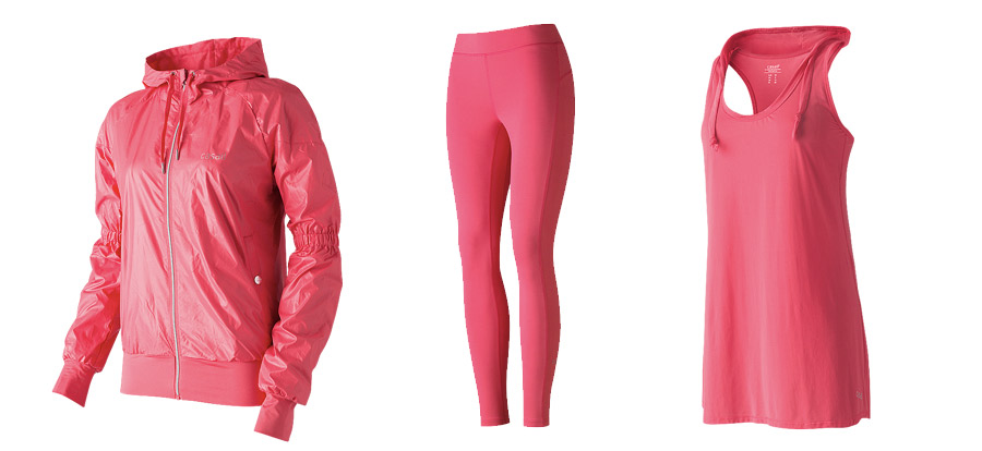 Casalls motsvarighet till färgen är ”Passion Pink”. Ovan Casall Studio jacket, mycket coola Casall Essentials Tights och Casall Racerhoodie.