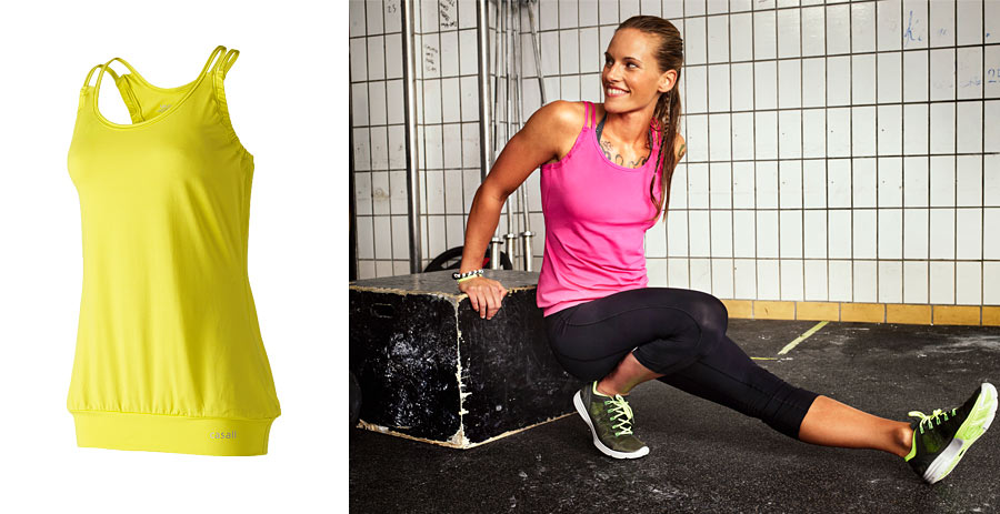 Tajtsen med rynkat tyg längs sidorna med reglerbara snören för att justera benlängd är också sjukt snygga. Och sköna. Materialet (Casall Rapitech Lite) känns som silke mot huden och tajsten sitter bra utan att strama åt. Ja, tajtsen var rörliga och bra vid mina overhead squats. Desto värre med min egen rörlighet i bröstryggen. Lite mer yoga?